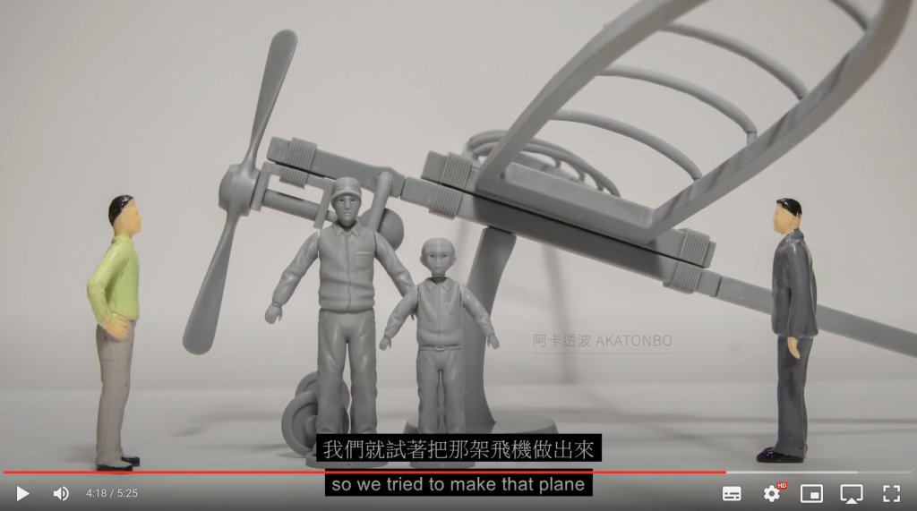 過去模型曾經乘載著軍國主義,現在人們則透過製作模型,展現詮釋歷史的慾望。「阿卡透波委員會」是與歷史現場若即若離的我們,以日本時代航空模型教具為原型,將航空工廠製造紅蜻蜓(AKATONBO)飛機的過去,用現代模型玩具的形式,編織不見於主流歷史的碎片與自身經驗,試圖重新「製作」與「組裝」屬於當下的模型飛機「阿卡透波」。